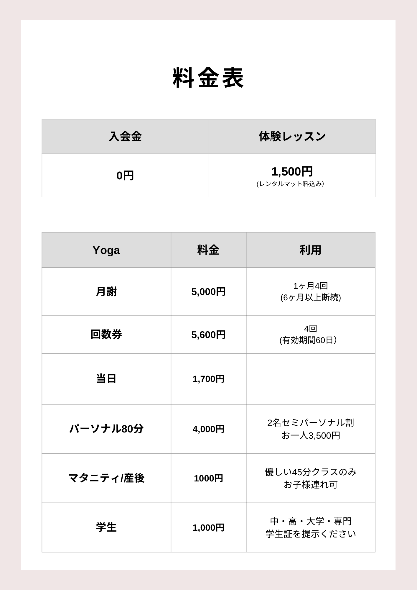 ※現在通ってくださっている方につきましては、別途ご案内している料金が適用されます。